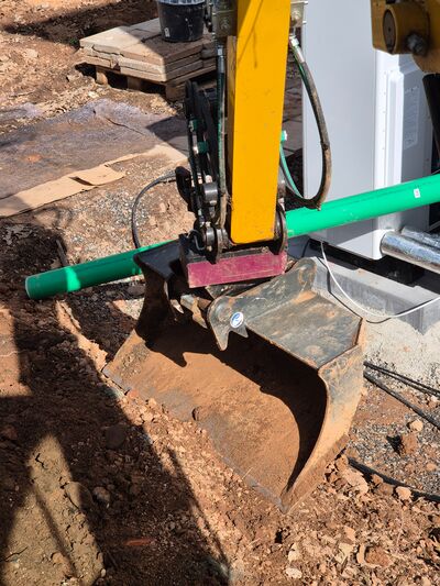 Über längere Zeit arbeitete er zunächst mit einem Eintonnen-Bagger gearbeitet, bevor er sich beim Baumaschinen-Händler Roth und Söhnel aus Buseck beraten ließ. Hier lernte Archinal den Drehantrieb von Holp kennen, da der Händler ihm den RotoTop anbot und auch ausprobieren ließ: Am Ende entschied sich Tim Archinal für einen 2,8-Tonnen-Bagger von Sany, der mit RotoTop, Schnellwechsler und verschiedenen Löffeln ausgestattet war. Der RotoTop hat ihn im ersten Jahr des Einsatzes nachhaltig überzeugt: „Ich bin wirklich zufrieden: Man kann die Anbaugeräte in alle Richtungen drehen, ohne den Bagger zu verlassen, man kann sehr eng an Hauswänden oder Begrenzungen arbeiten, ohne Beschädigungen zu befürchten, es gibt auf einmal eine unglaubliche Flexibilität für den Baggerarm.“