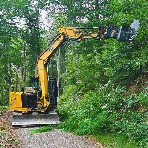 CutWheel® ist das praktische Hilfsmittel für Forstbetriebe, die in und am Wald tätig sind, um hohe Sträucher und Waldtraufe sowie das Lichtraumprofil in Form zu halten.