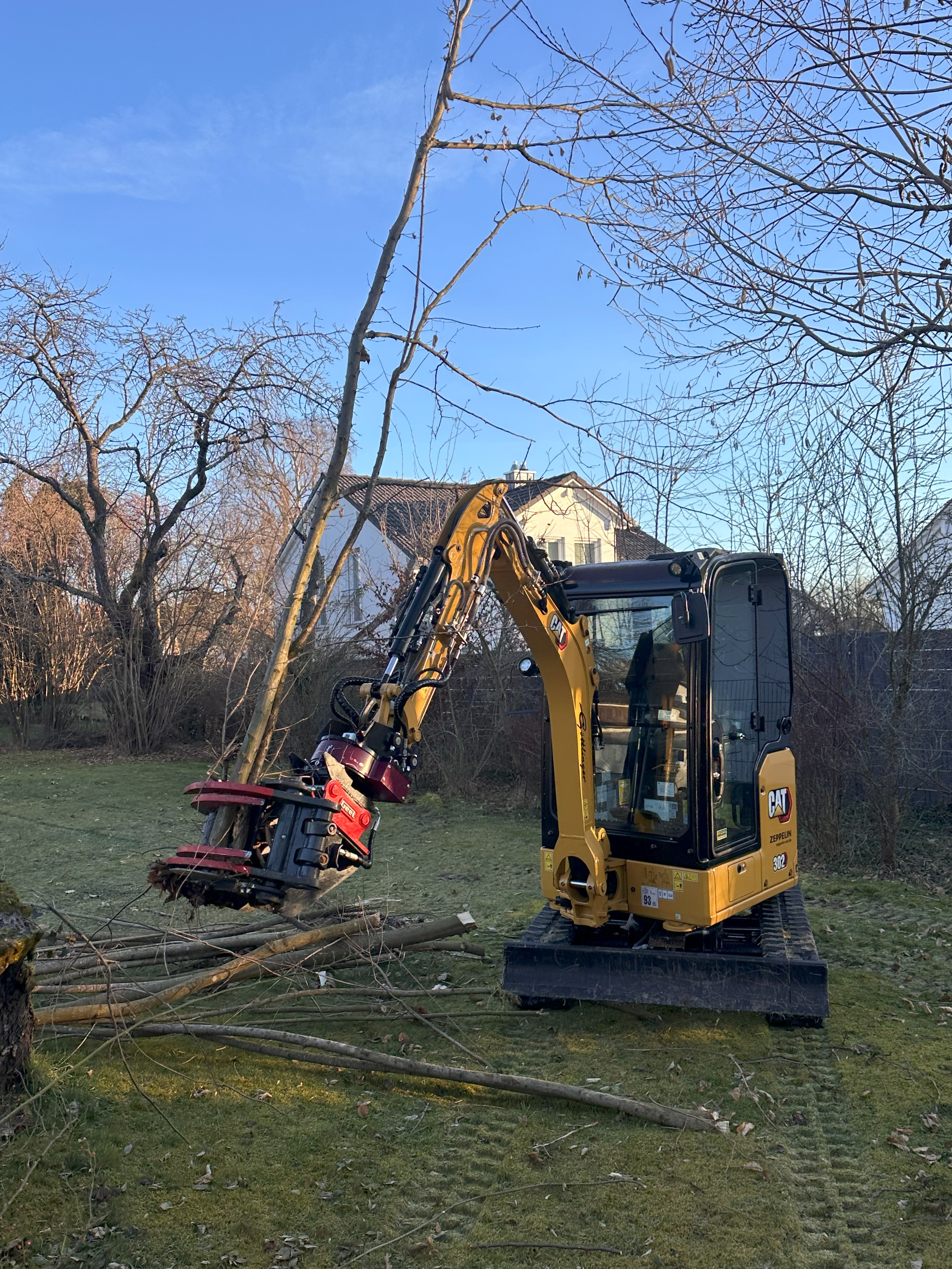 Die Grashüpfer GalaBau aus Eggenstein setzt bei der Gartengestaltung auf einen Kompaktbagger mit Drehantrieb von Holp...